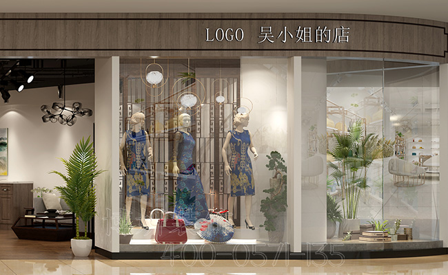 手工店门口装修设计,这一边展现的是精致的衣服设计,全面采用透明的玻璃装修,完全的展现出来,里面在放置装饰品,显得非常有意境。